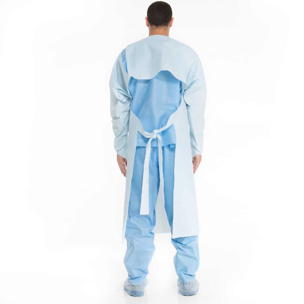 Impervious non-sterile chemo gown with thumb loops, made from Spunbind laminate which provides a fluid resistant gown that has been tested to ASTM F 739-99a for resistance to fluids and gases.